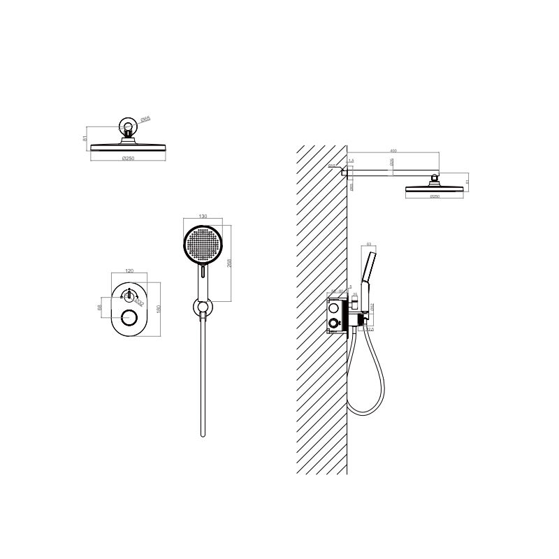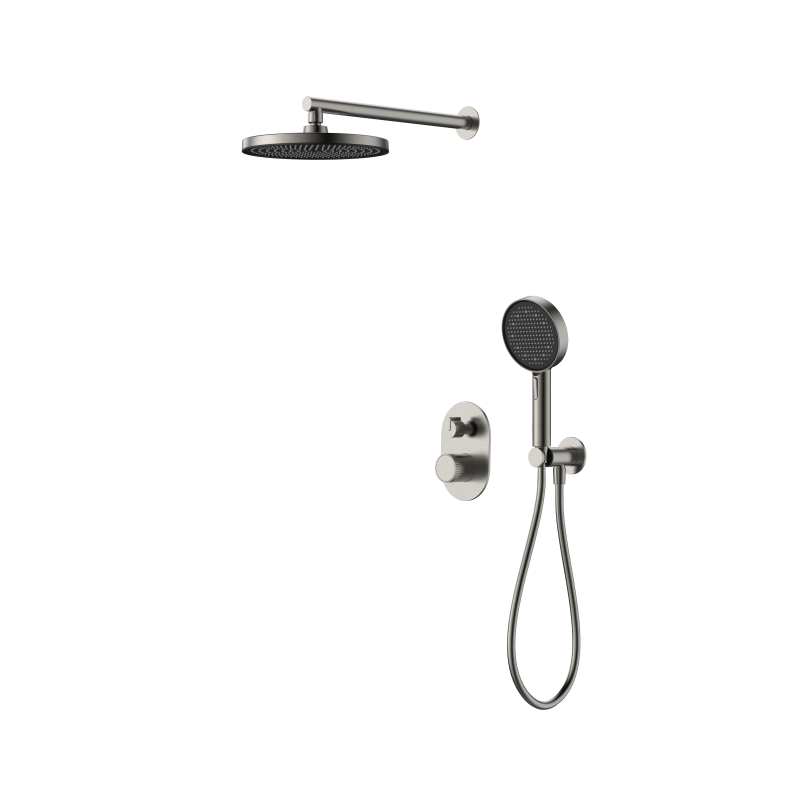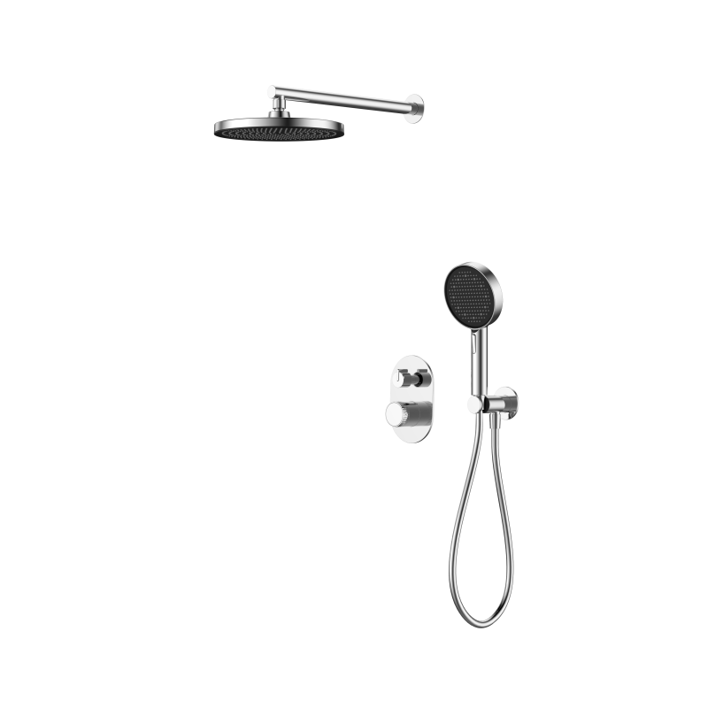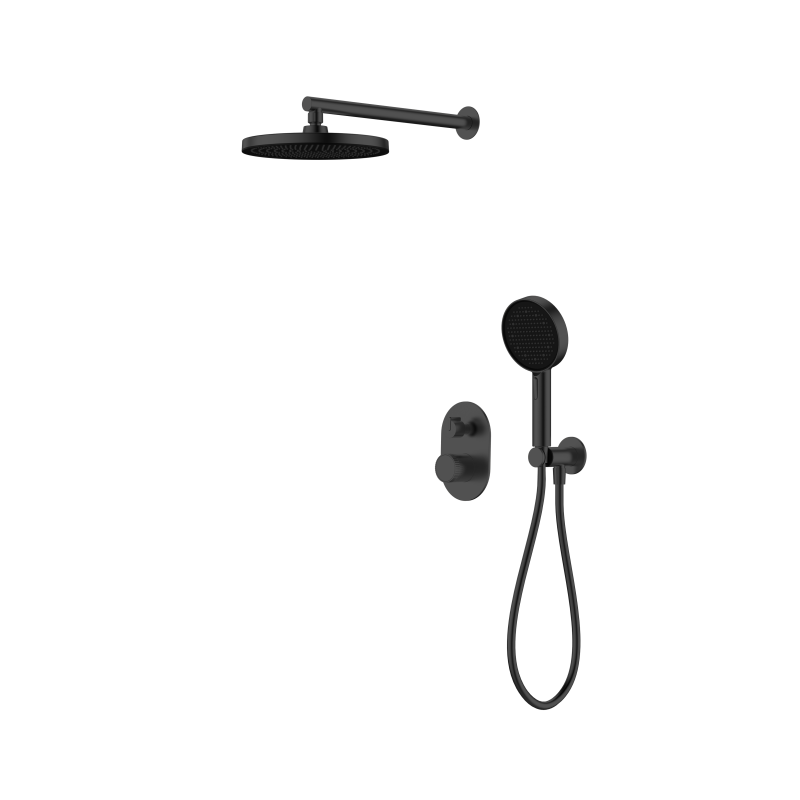 Nuoya Series 1NY500700 Thermostatic Smart Conceal Brass Mixer Valve Set with Rain Showerhead and Waterfall Bath Spout Black