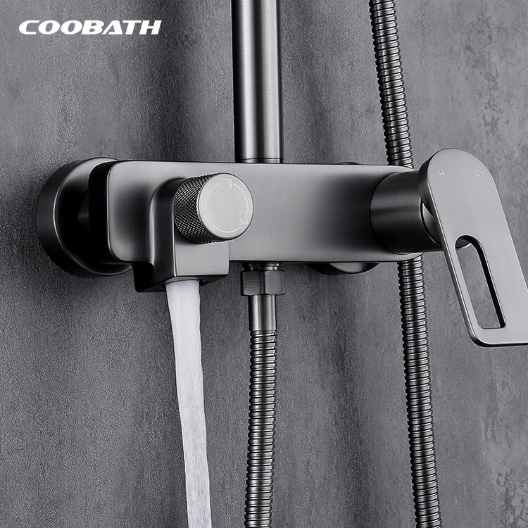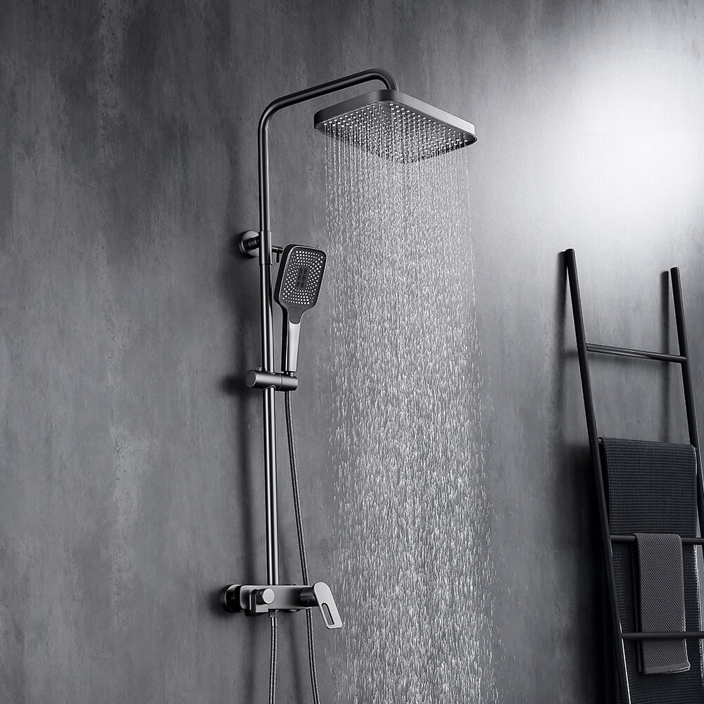 Yaji Series 1LU150302 Professional Grade Brass Bath Fittings Wall Mounted Rain Shower Mixer Set Gun Grey