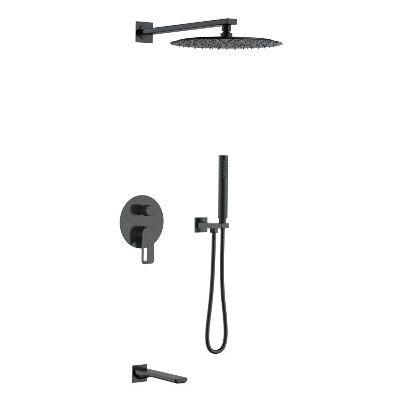 Nuoya Series 1NY500700 Thermostatic Smart Conceal Brass Mixer Valve Set with Rain Showerhead and Waterfall Bath Spout Black