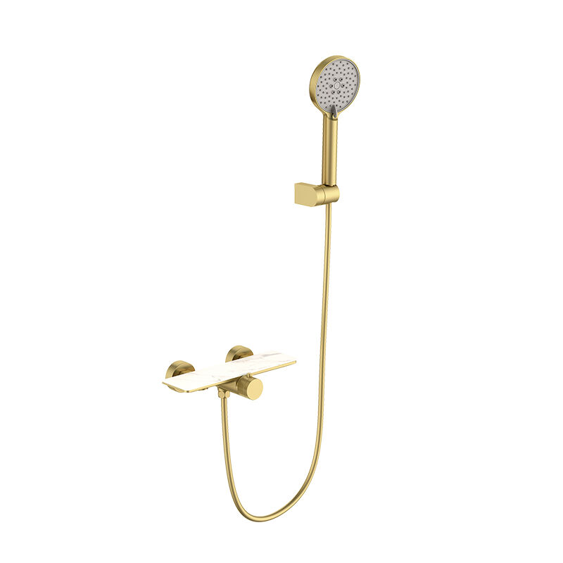 Cool Series 1LN810401 Durable Complete Brass Bath Shower Mixer Set with Wall Mounted Faucet Design Brushed Gold