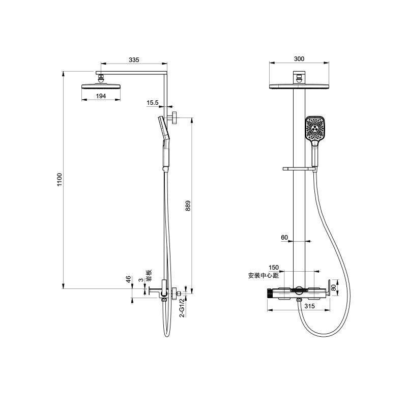 Fly Series 1LN030400 Professional Grade Brass Bath Fittings Wall Mounted Rain Shower Mixer Set Chrome