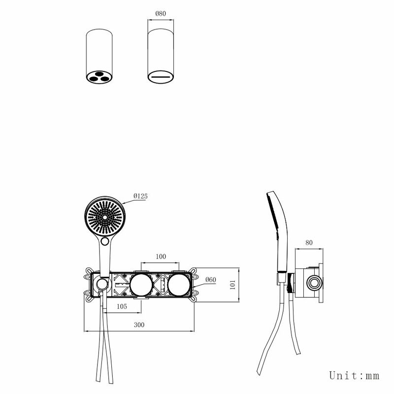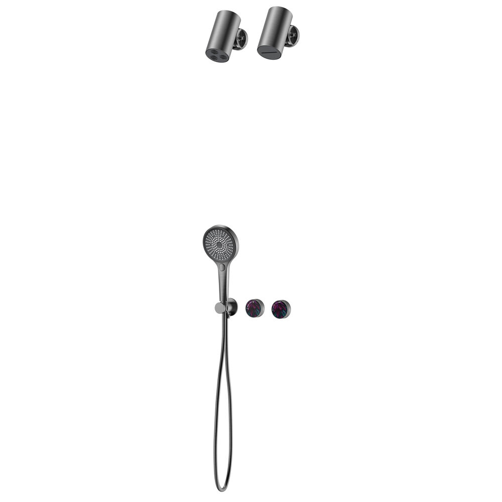 Kaidy series KD500600 3 Function Complete Brass Bath Rainfall Shower Faucet Set Mixer Kit with All Accessories Gun Grey