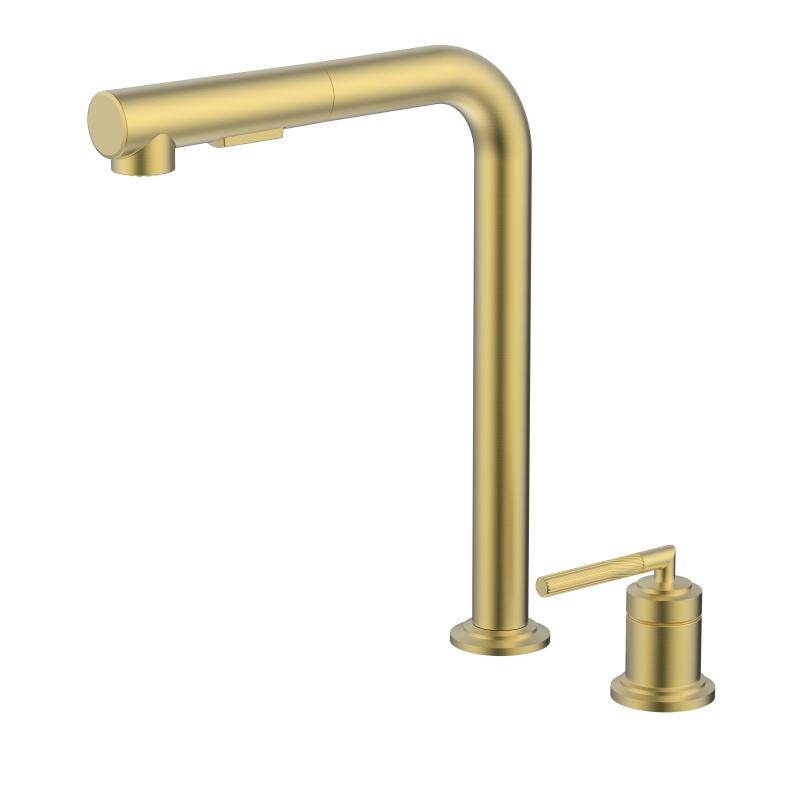 Laosi Series 1LU060201 Brass Faucet for Kitchen with Pull Out Sprayer and 360 Rotation Mixing Cold Hot Water Gold