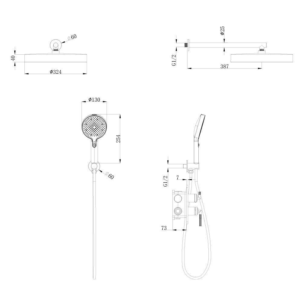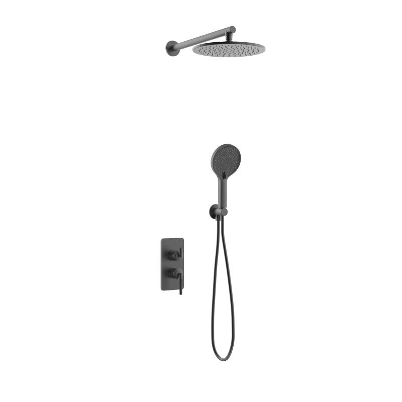 Xifan Series 1XF500700 Luxury Spa Experience Conceal Brass Valve with Rainfall Shower and Waterfall Bathroom Set Gun Grey