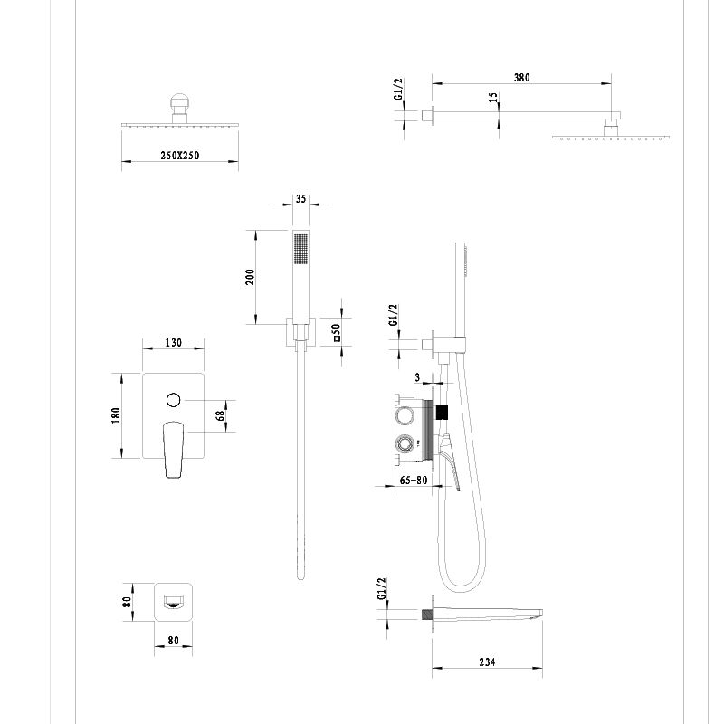 Sekko series 1SE500716 Brass Concealed Smart Thermostatic Mixer Valve with Rain Shower and Waterfall Spout Bathroom Kit Rose Gold