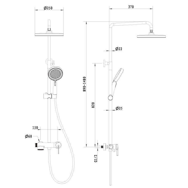 Sekko series 1SE500704 Complete Bathroom Spa Kit Concealed Brass Mixer Rainfall Shower and Waterfall Set Gun Grey