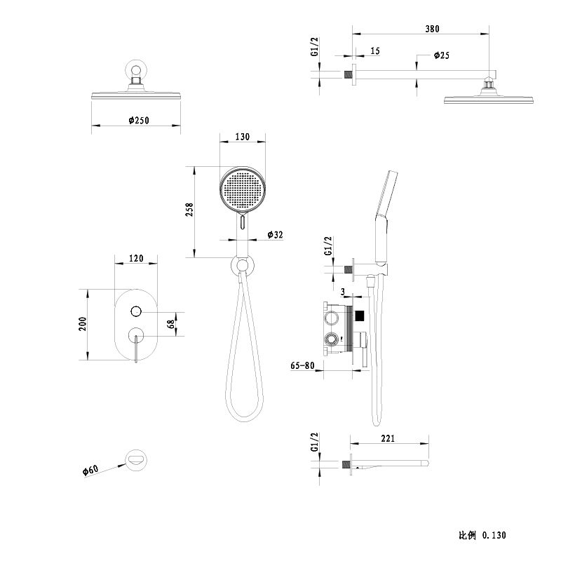 Sekko series 1SE500718 Modern Bathroom Shower System Set Concealed Brass Valve Rainfall Head Waterfall Mixer