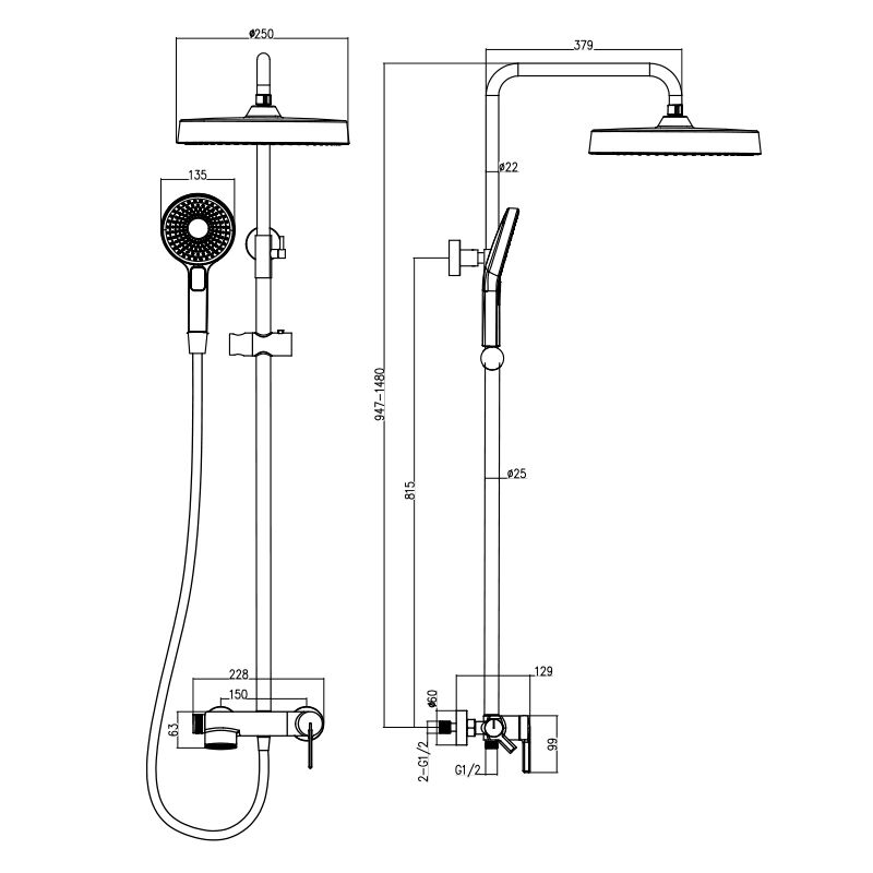 The wall-mounted design affords a sleek, minimalist profile that complements any Modern interior aesthetic. It integrates seamlessly as a standalone shower head set or pairs elegantly with a bath shower mixer to form a comprehensive rainfall shower system. Available in four curated finishes — Chrome, Black, Brushed Gold, and Gun Metal — it offers flawless coordination within your chosen shower sets and overall décor.