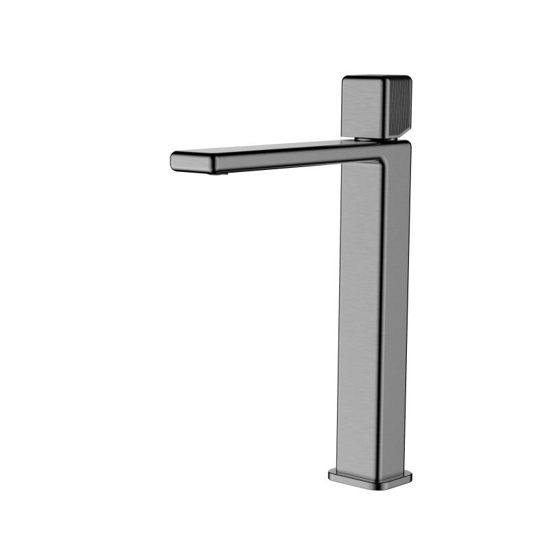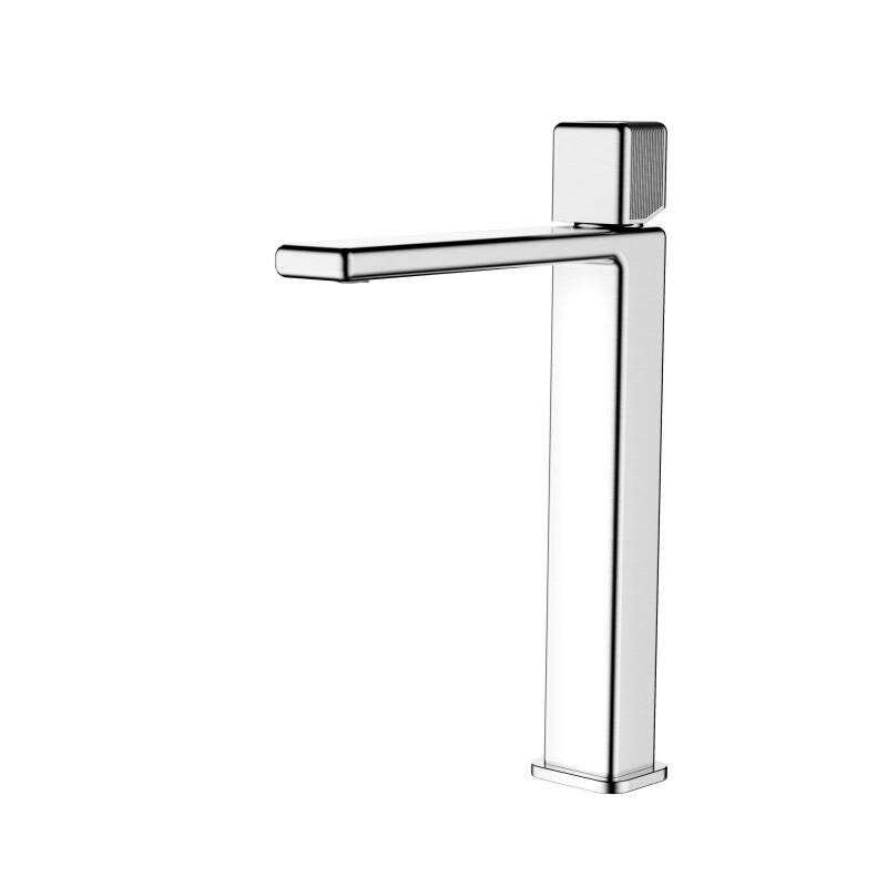 The XINGBO bathroom faucet boasts a high spout, which is not only a statement of modern design but also highly practical. Its elegant curve provides ample clearance beneath, making it easy to fill large containers or wash hands comfortably, perfectly suited for wash basin and sink applications. A standout feature is the ingeniously designed handle. It incorporates a striped anti-slip pattern, marrying form with function. This textured design ensures a secure and comfortable grip, even with wet hands, enhancing user safety and convenience. The handle's operation is smooth and precise, offering effortless control over water temperature and flow rate.